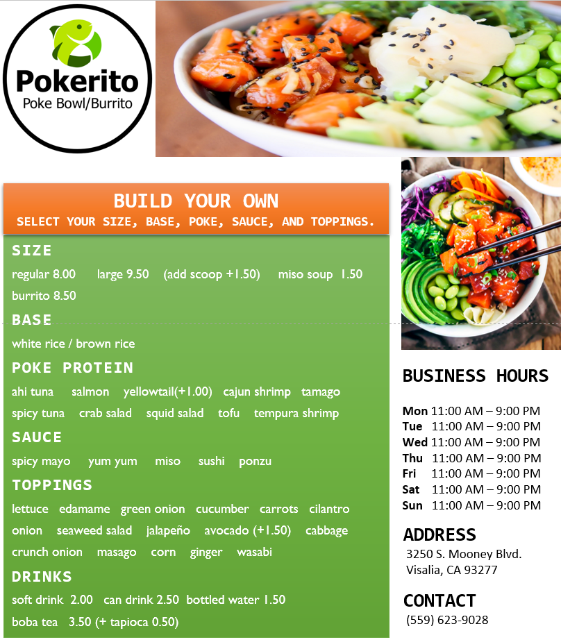 Welcome to Pokerito, a delightful Asian fusion restaurant nestled in the heart of Visalia, California. Located at 3250 S Mooney Blvd, this vibrant eatery brings the flavors of the Pacific to your plate, creating a dining experience that is as fresh as it is fulfilling.
